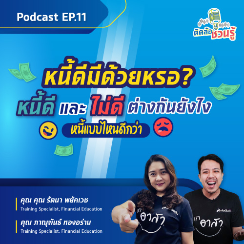 สำหรับคุณทั้งหลายที่รักในการฟัง Podcast เงินติดล้อมีช่องทางให้คุณได้ติดตามความรู้เกี่ยวกับเรื่องการเงินสนุกสุดเพลิดเพลินแล้ว โดยใน EP.11 หนี้ดี VS หนี้เสีย ให้บริการทั้งใน Spotify, Podbean