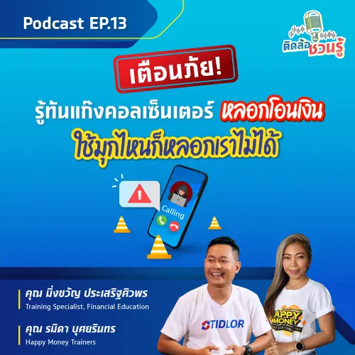 สำหรับคุณที่รักในการฟัง Podcast เงินติดล้อมีช่องทางให้คุณได้ติดตามความรู้เกี่ยวกับเรื่องการเงินสนุกสุดเพลิดเพลินแล้ว โดยใน EP.13 มุกหลอกให้โอนเงินของแก๊งคอลเซ็นเตอร์ มีให้บริการทั้งใน Spotify, Podbean