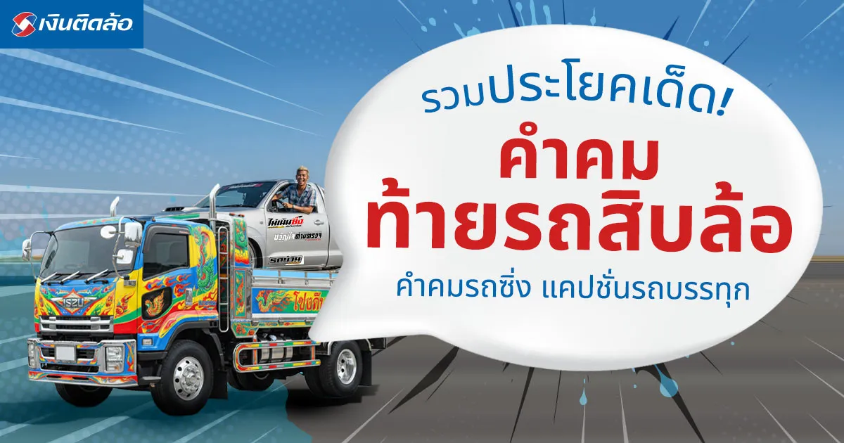 เพราะอารมณ์สุนทรีย์แฝงอยู่ในสายเลือดคนขับรถบรรทุกทุกคนอยู่แล้ว มาสร้างสีสันให้กับเพื่อนร่วมทางด้วยคำคมท้ายรถสิบล้อ คำคมรถซิ่ง หรือแคปชั่นรถบรรทุกฮา ๆ โดนใจคนอ่านอย่างแน่นอน เงินติดล้อจึงได้รวม 50 วลีท้ายรถบรรทุกให้ได้เอาไปเป็นไอเดียทำสติ๊กเกอร์ติดท้ายรถกันได้เลยครับ เมื่อสร้างสีสันให้กับเพื่อนร่วมทางแล้ว อย่าลืมสร้างความสบายใจตลอดการเดินทางให้กับรถของคุณด้วยการทำประกันรถบรรทุกด้วยนะครับ