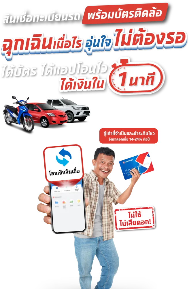 จัดสินเชื่อทะเบียนรถ ที่เงินติดล้อ ให้คุณได้ทั้งเงิน บัตร แอปพร้อมรับมือทุกสถานการณ์ ให้ชีวิตหมุนต่อได้ ไม่สะดุด