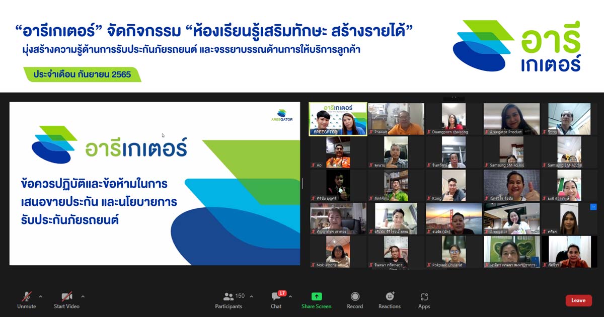 อารีเกเตอร์ เปิดบ้านต้อนรับนายหน้าประกันภัยและนักขายอิสระกับกิจกรรม “Areegator Monthly’s Classes ห้องเรียนรู้เสริมทักษะ สร้างรายได้” ประจำเดือน ส.ค. 2565