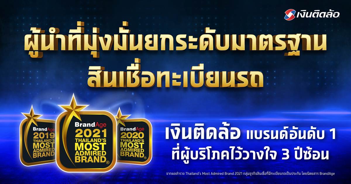 เงินติดล้อ ตอกย้ำอีก 1 ความสำเร็จในการคว้ารางวัล Thailand's Most Admired Brand Award 2021 ในฐานะองค์กรที่ผู้บริโภคไว้วางใจและเชื่อถือที่สุด ถึง 3 ปีซ้อน