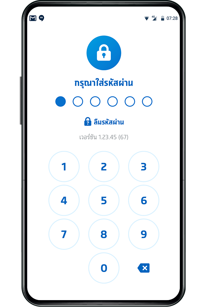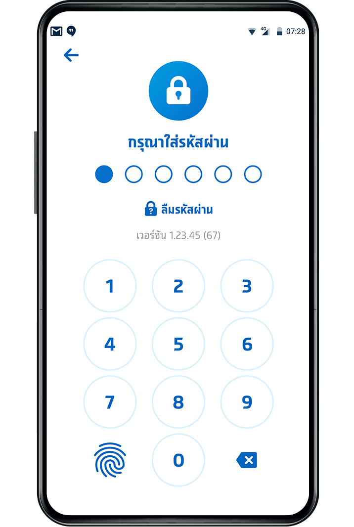 วิธีที่ 1 เปิดใช้งานจากหน้าใส่รหัสเข้าแอป กรณีเข้าสู่ระบบใหม่